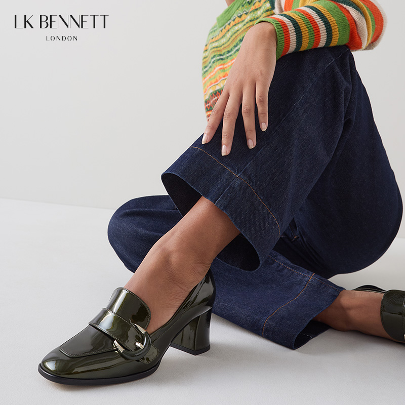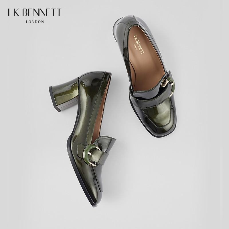 复古高级感浅口漆皮乐福鞋 lkbennett绿色粗跟单鞋 女2024年秋新款