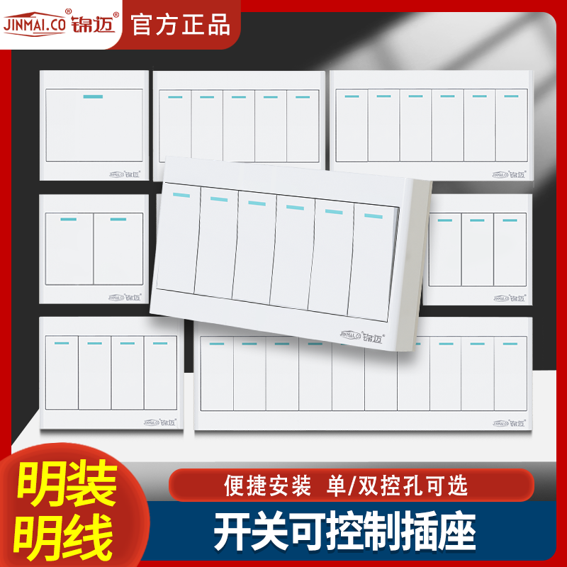明装 开关插座一开双开单双控三四五5位明线明盒超薄家用开关面板