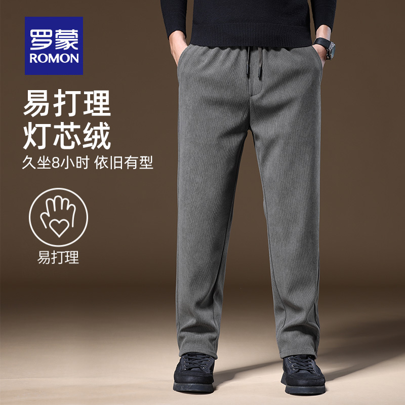 潮流休闲裤 松紧腰百搭直筒裤 2025秋季 宽松商务长裤 男 新款 罗蒙男士
