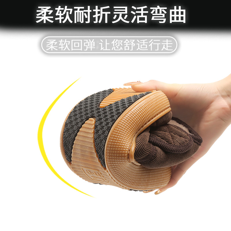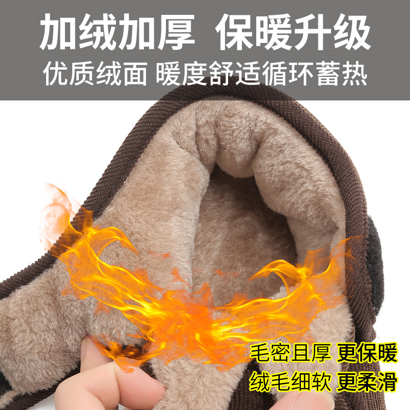 中老年防滑牛筋底魔术贴调节宽松加绒保暖男女老人妈妈棉拖鞋 包跟