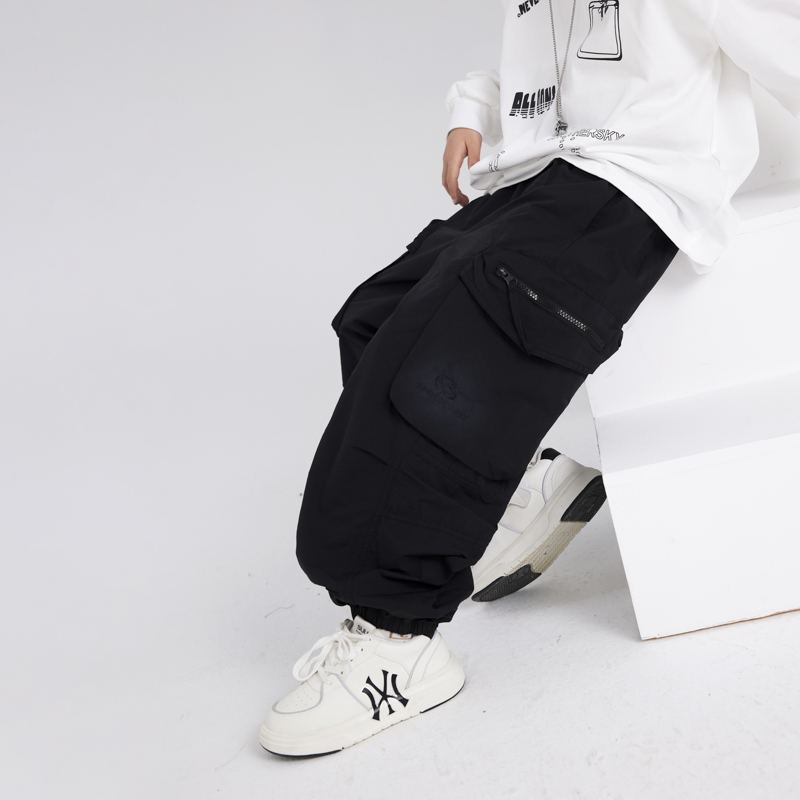 黑色工装 儿童男孩春秋酷帅宽松裤 冲锋裤 长裤 子潮 2025新款 男童秋季
