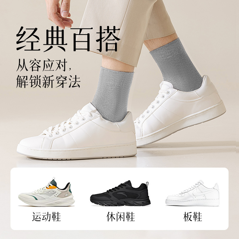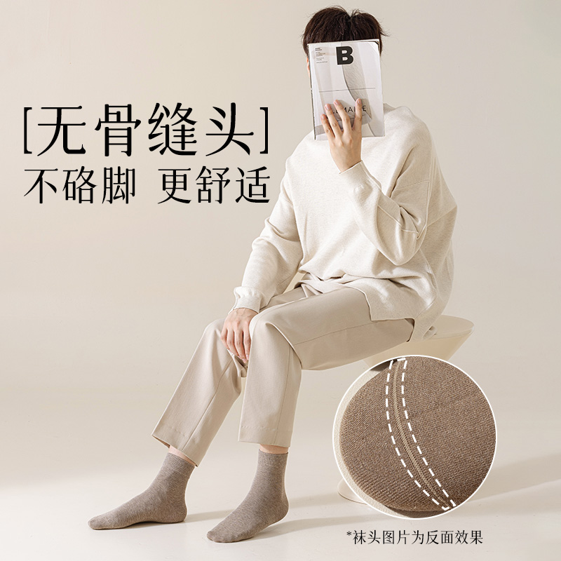 袜子男款 2025年春无骨商务长袜 纯棉全棉防臭春秋中筒袜7A抗菌男士