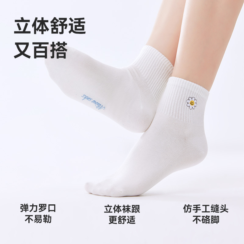 亲相见袜子女纯棉防臭中筒袜秋季 吸汗7a抗菌透气无骨白色女士短袜
