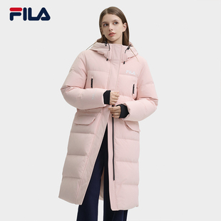 运动连帽保暖外套 新品 鹅绒FILA斐乐官方女子中长款 羽绒服2025冬季