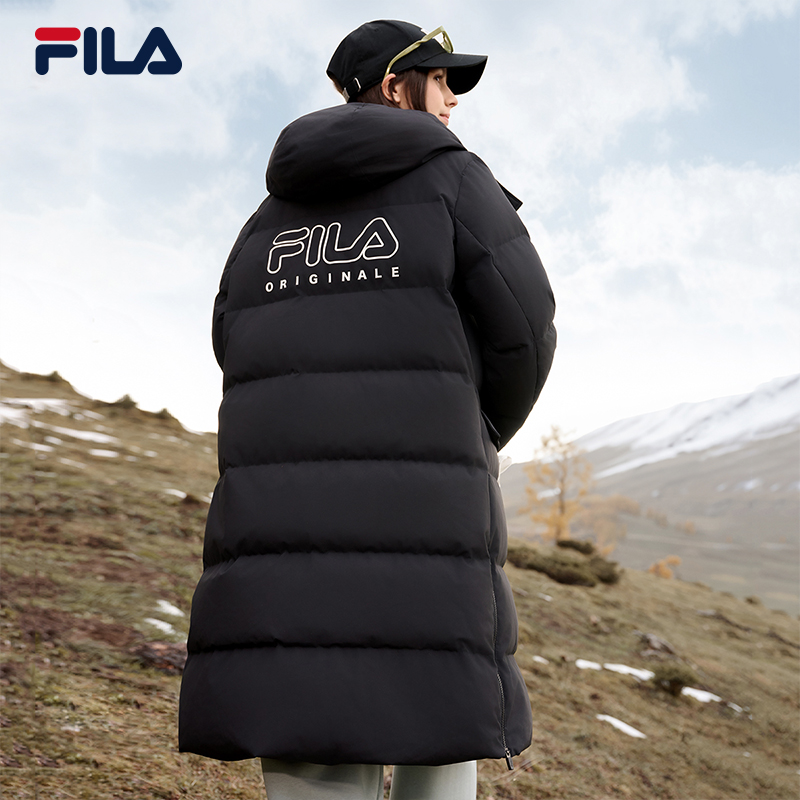 棉羽连帽外套 保暖鸭绒中长款 FILA斐乐官方女士羽绒服冬季 运动时尚