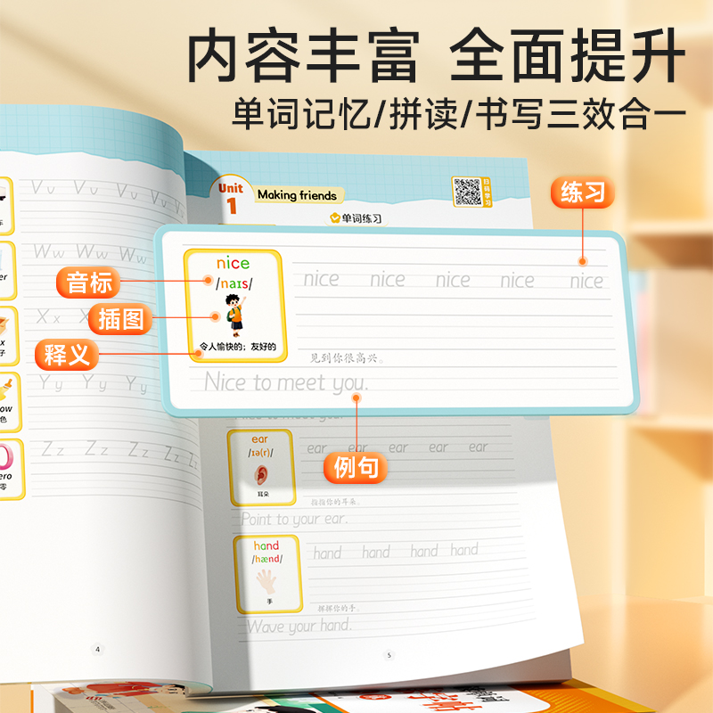自然拼读单词同步练字帖三四五六年级上册下册衡水体英语单词小学生英语作文范文练字本英语作文范文练字本英语音标每日 时光学