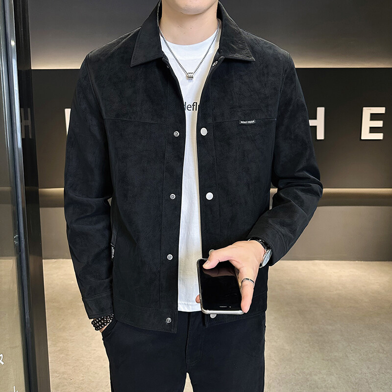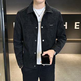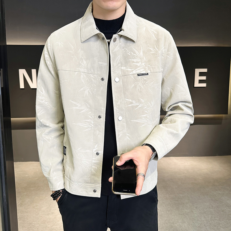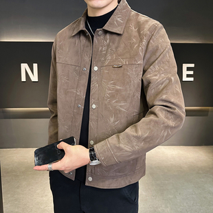 男装 外套男春秋季 短款 修身 皮衣休闲高级皮夹克男 2025压花翻领韩版