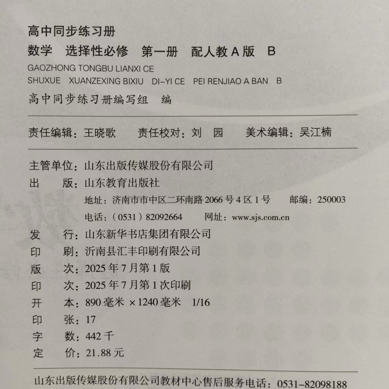 B层阶 社高二数学选修1同步练习册配人教A版 2025秋B层配人教A版 高中同步练习册数学选择性必修第一册山东教育出版