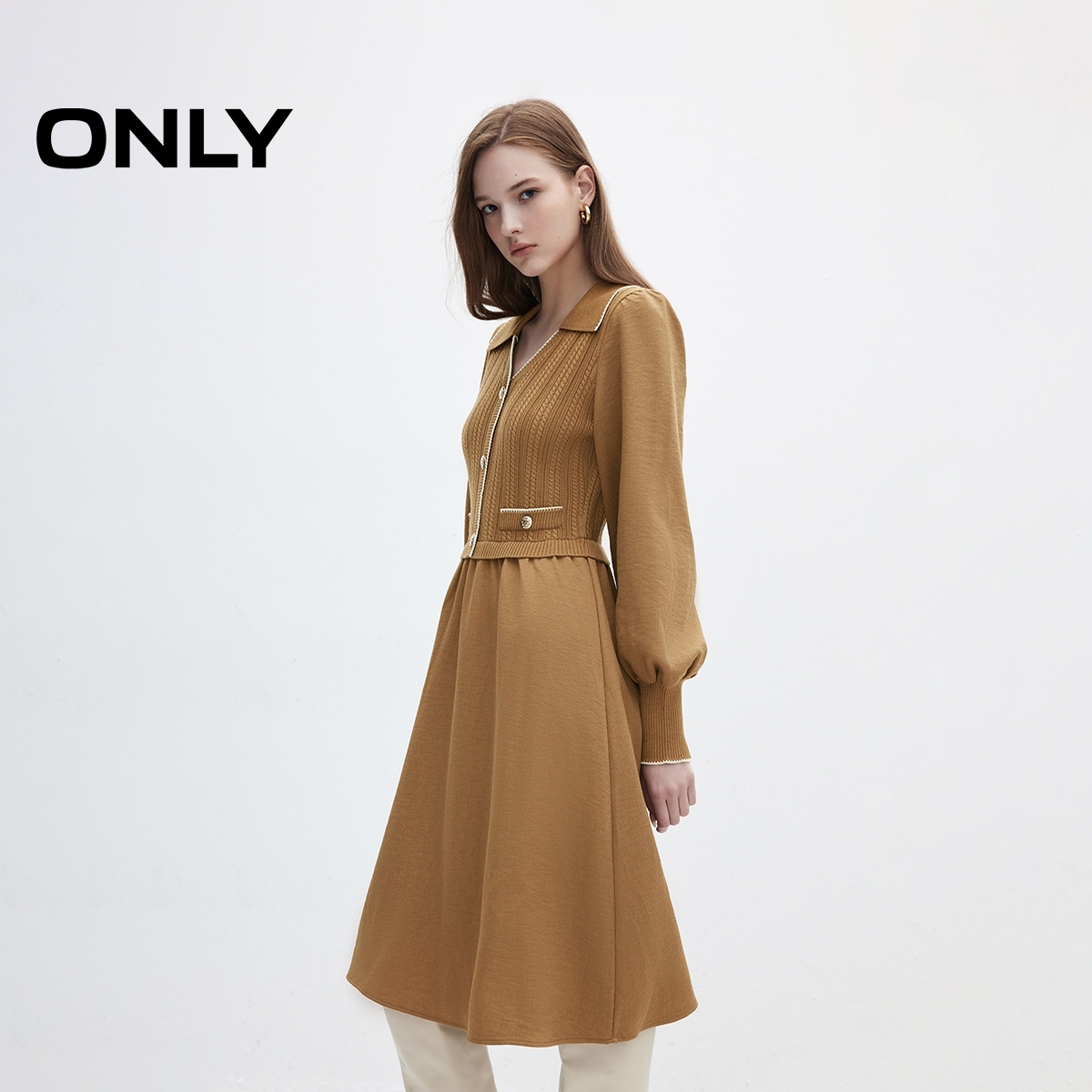 气质优雅拼接撞色V领中长裙连衣裙女 夏季 ONLY奥莱