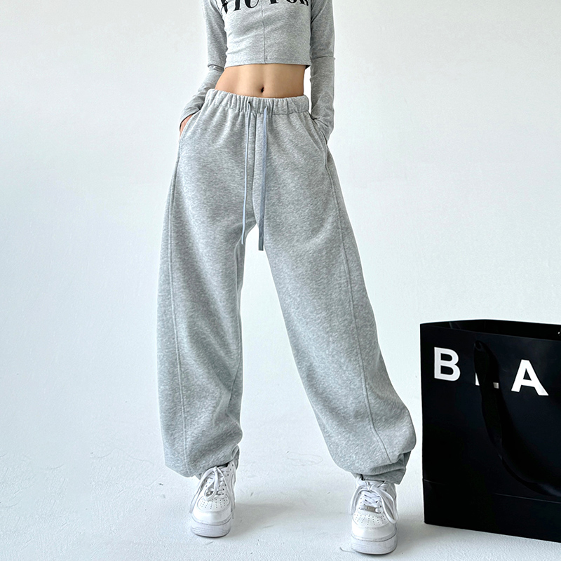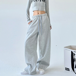 复古百搭直筒阔腿长裤 直筒休闲宽松显瘦美式 女春秋新款 灰色运动裤