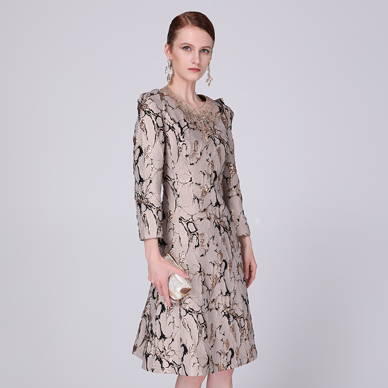 金色提花连衣裙子收腰显瘦长裙礼裙 早秋新款 专柜正品 马天奴女装