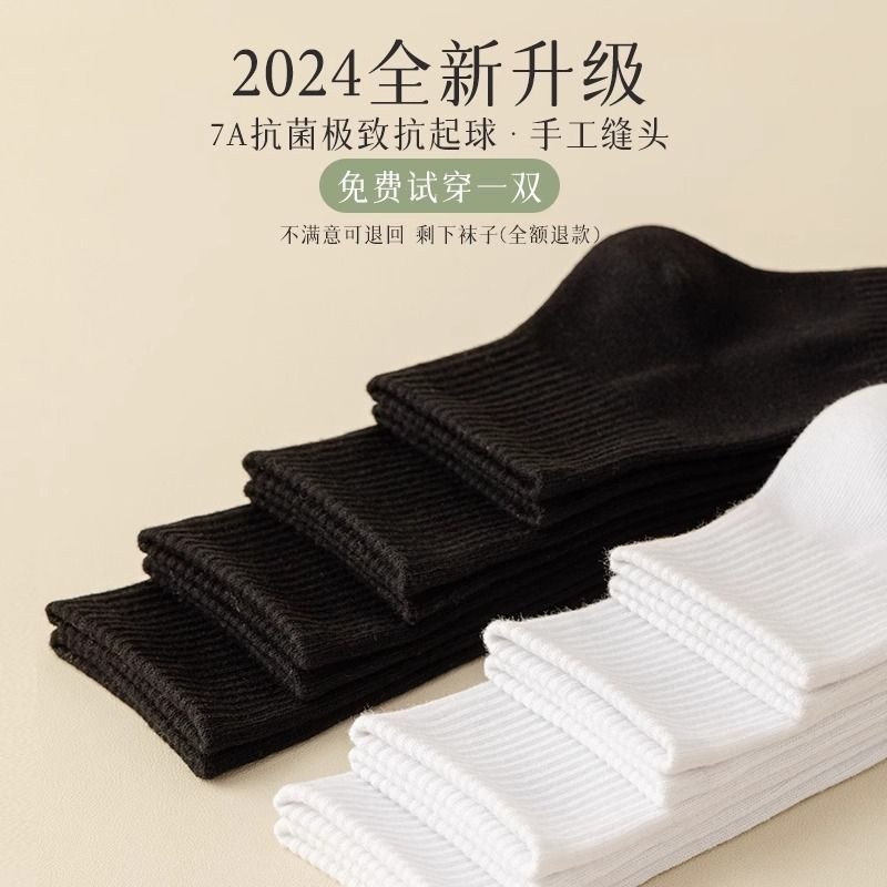 棉伙棉伴海藻袜舒适抗菌防臭男女商务运动纯色裸感中筒袜