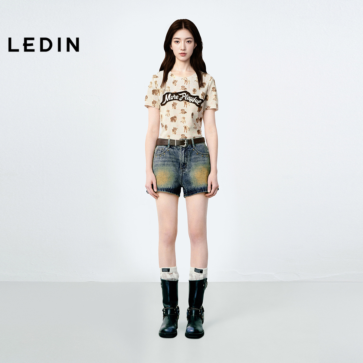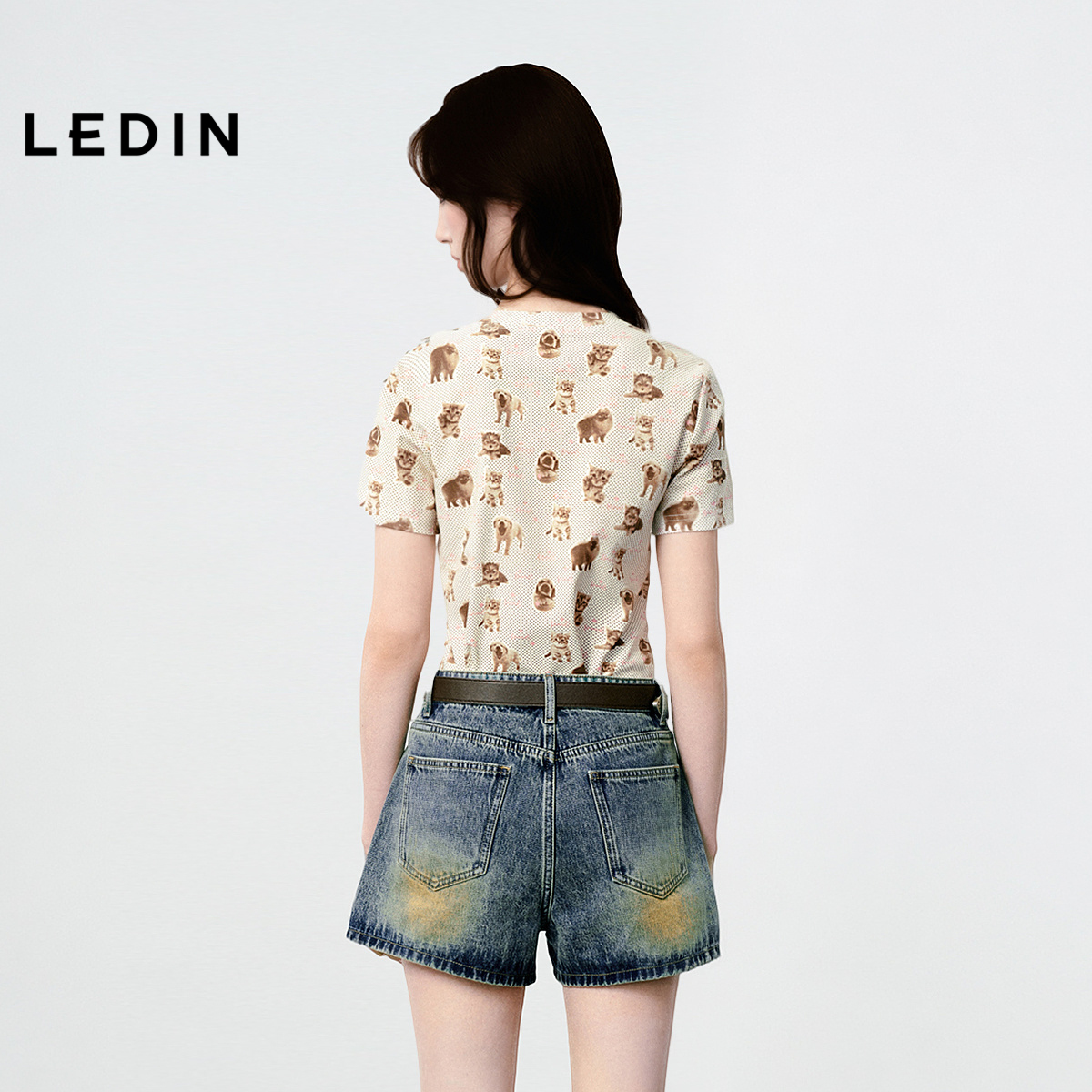 正肩短袖 乐町甜辣废土风萌宠满身印花T恤夏季 贴布绣修身