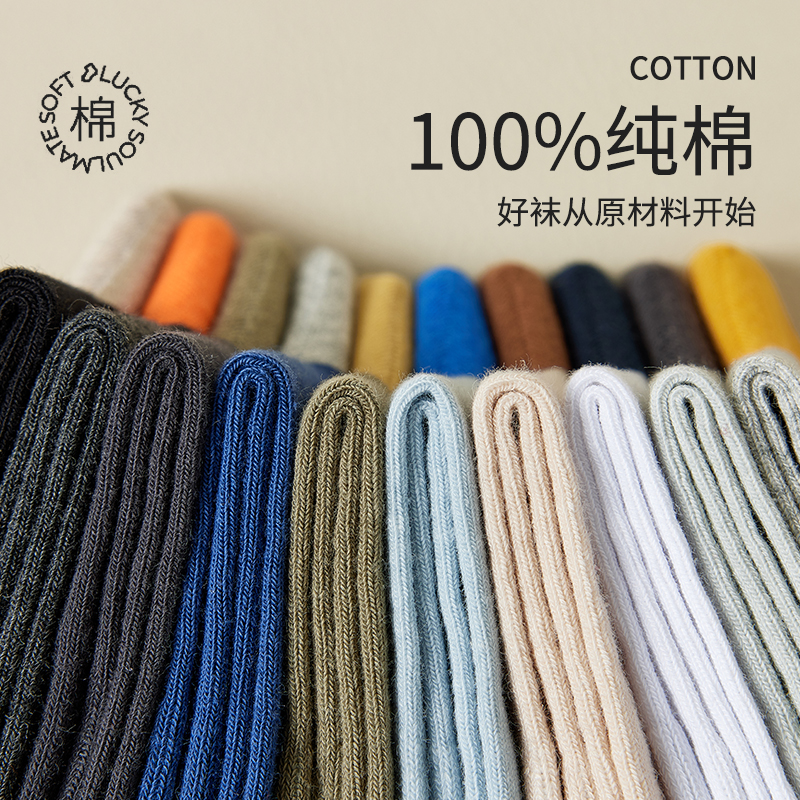 棉伙棉伴海藻袜舒适抗菌防臭男女商务运动纯色裸感中筒袜