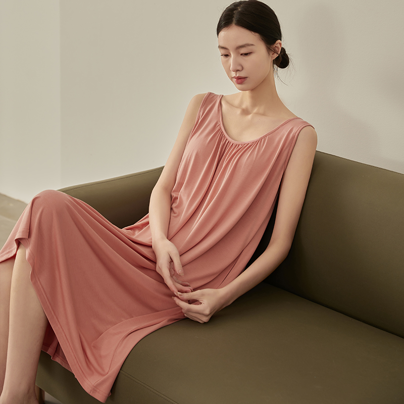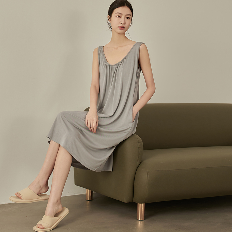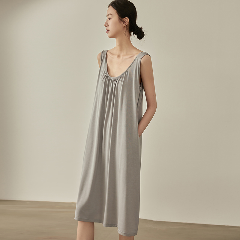 猫人棉绸睡裙女带胸垫夏季 莫代尔家居服 凉感简约甜美冰丝睡衣短袖