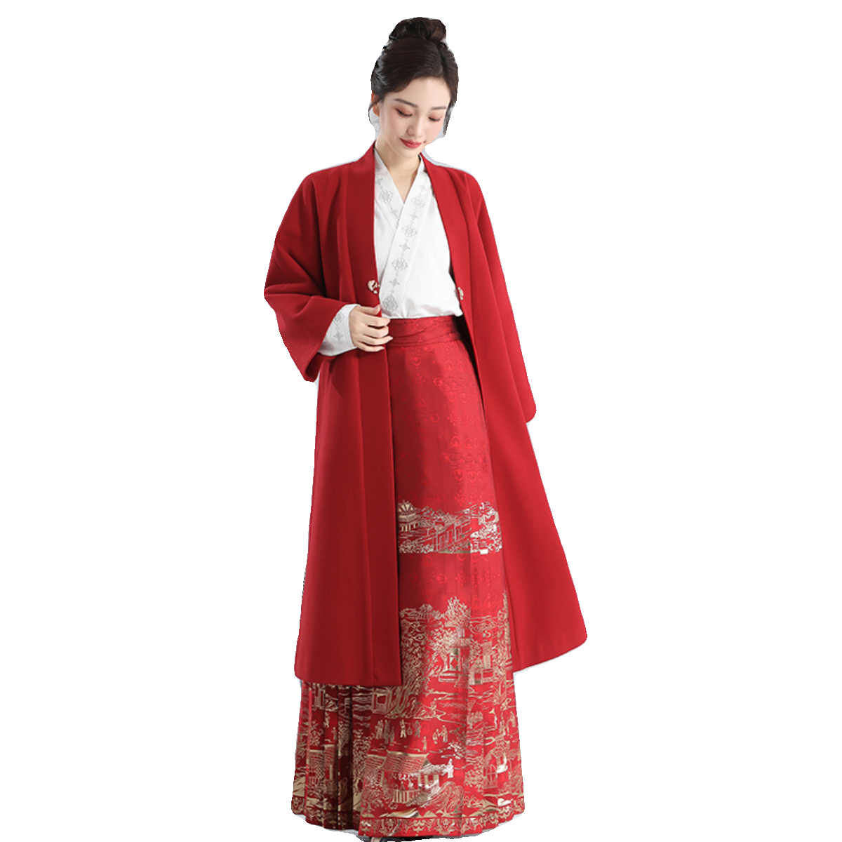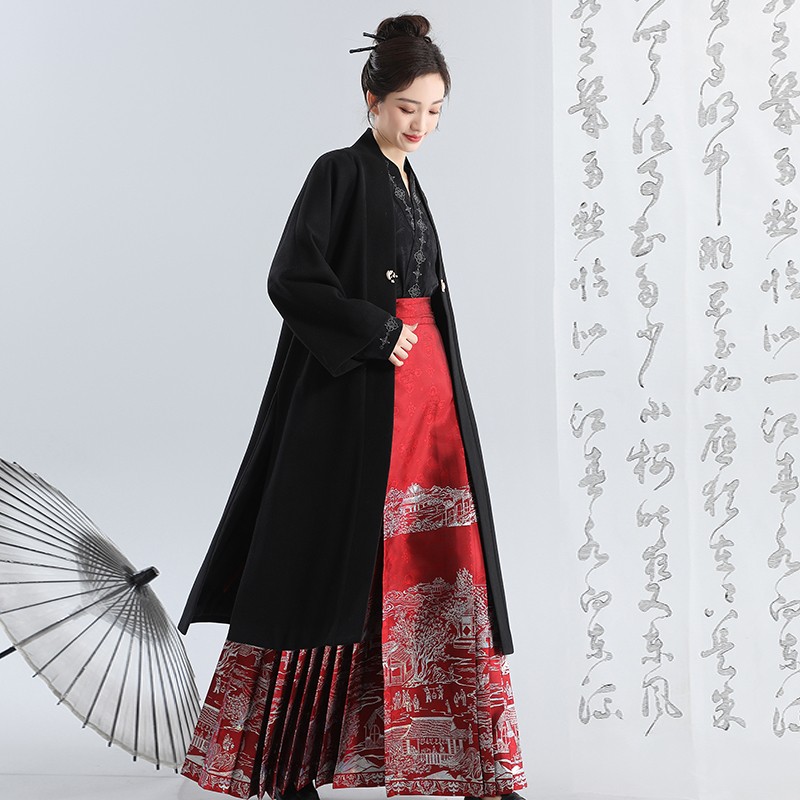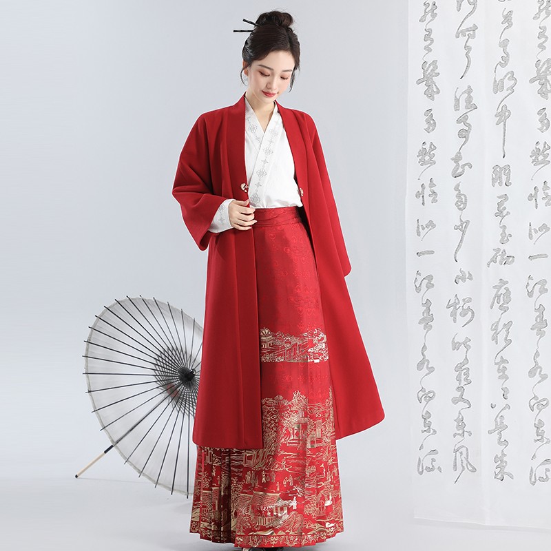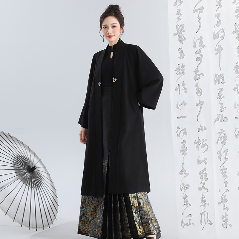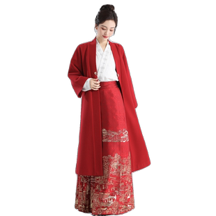 无衣饮羽双色国风毛呢外套拜年服新中式 汉服马面裙搭配2025新款