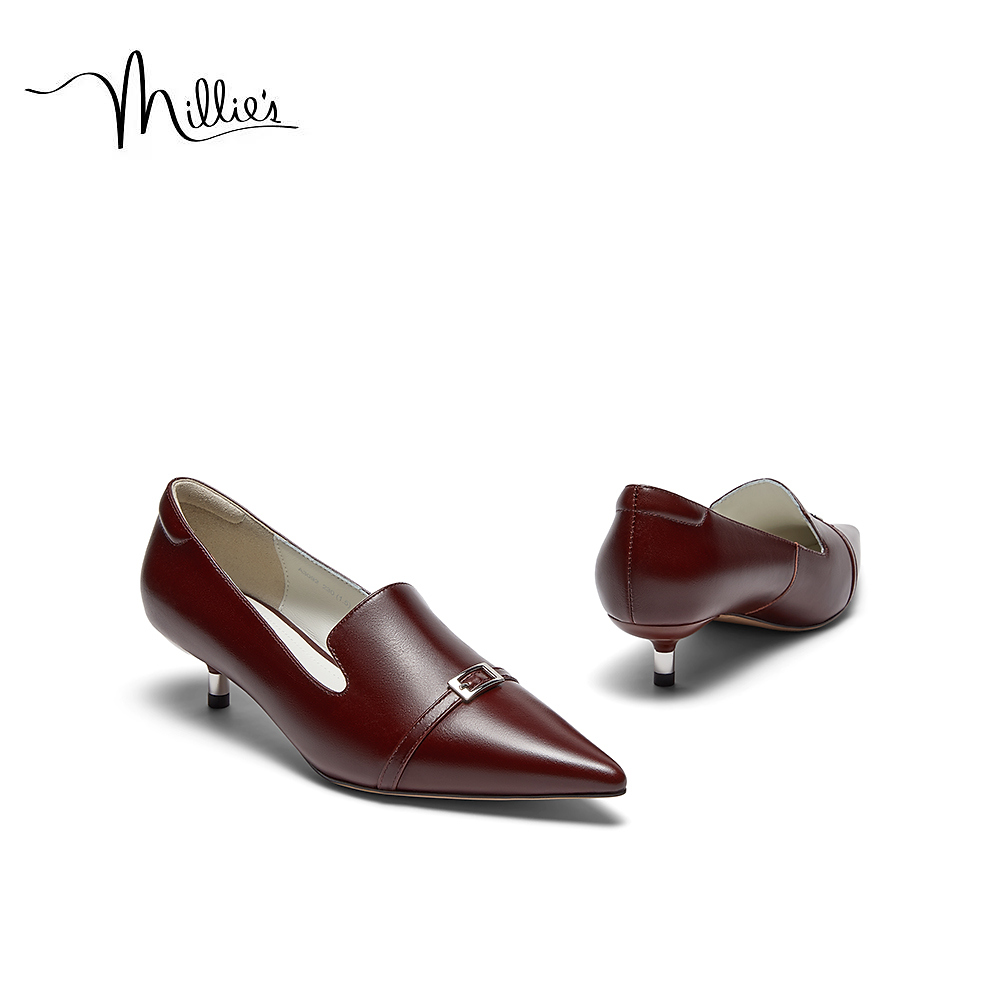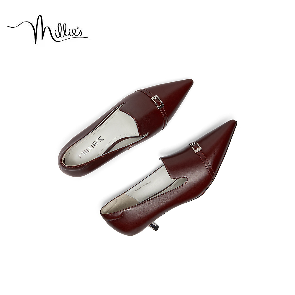 尖头乐福鞋 妙丽官方旗舰店女鞋 2025秋季 高跟鞋 MILLIE 猫跟单鞋
