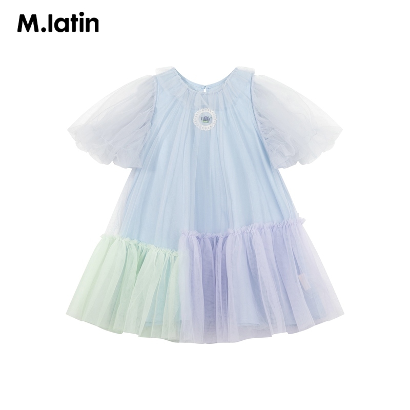 马拉丁童装 女童小童撞色设计公主感氛围公主裙 儿童连衣裙24夏新款