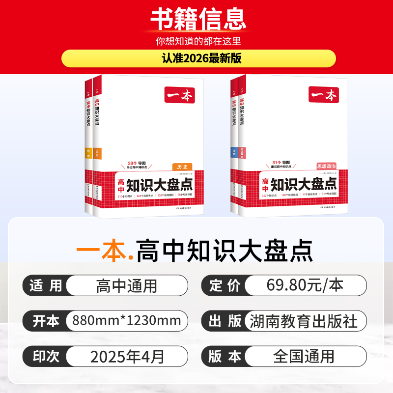 一本高中知识大盘点语文数学英语物理化学思想政治地理生物历史基础知识高一高二高三高考复习基础知识清单 2026新版 抖音同款