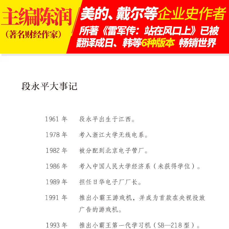 新版 敢为天下后 世界卓越 段永平传 价值投资者之一人物传记书籍 商界名人传记自传 精装 陈润著 正版 中国著名企业家传记丛书