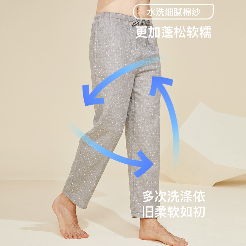 男士 纯棉抽绳长裤 夏季 宽松大码 棉纱布休闲可外穿家居裤 小护士睡裤