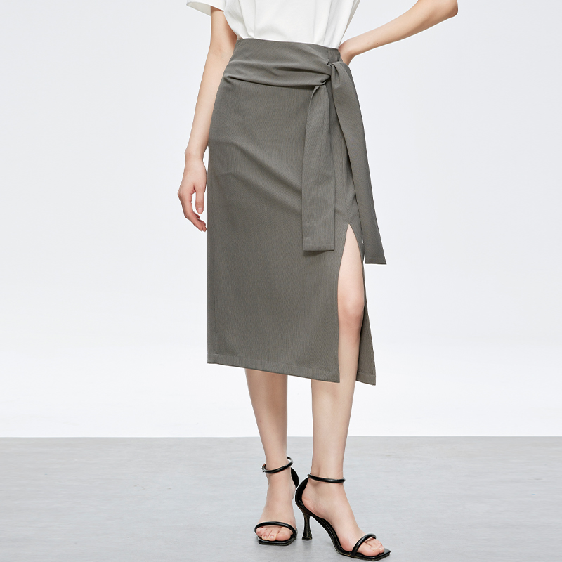 衣香丽影咖色直筒高纤皮裙女2025年秋装 显高显瘦开衩半身裙子 新款