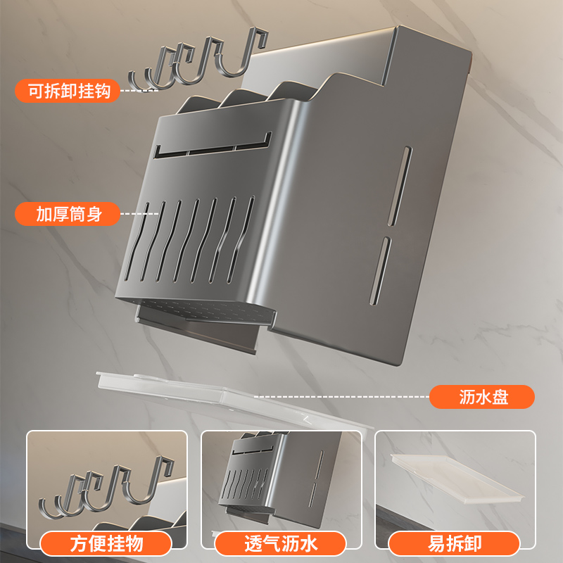 锅铲刀架置物架厨房挂钩勺子铲子挂架新款 一体收纳架筷子菜刀筷筒