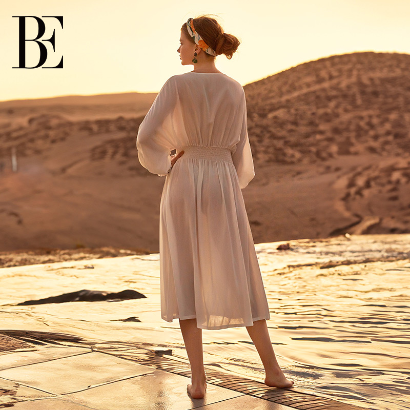 BE范德安ANNA系列2025新品 沙滩裙沙滩海边度假 女士披纱裹裙蝙蝠袖