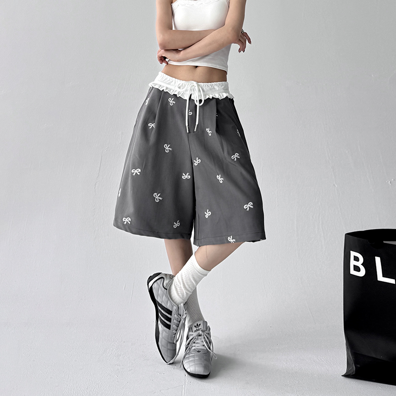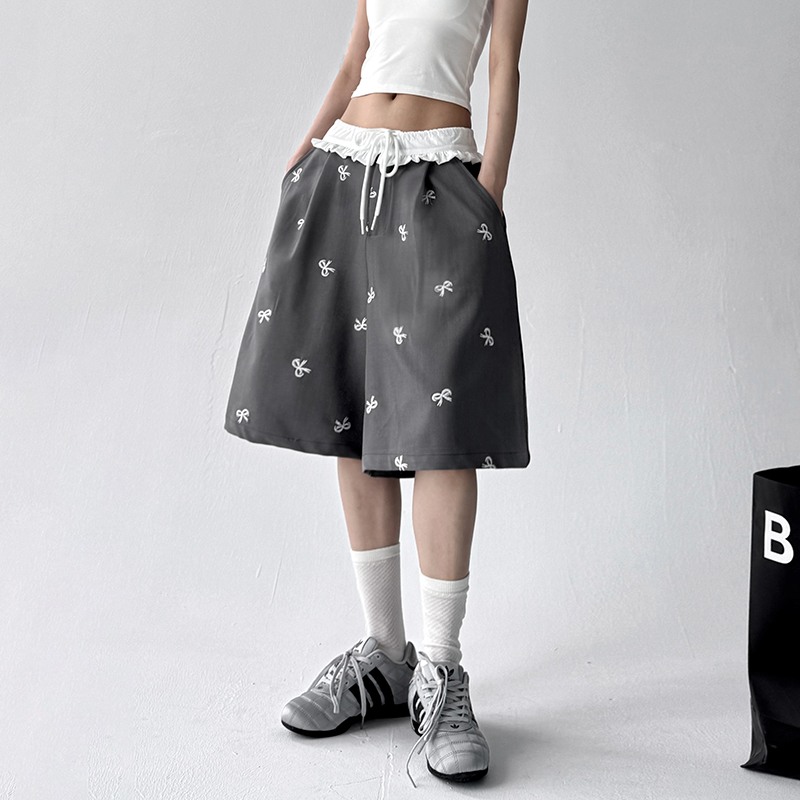 甜酷风蝴蝶结直筒休闲宽松中性拼接中裤 西装 新款 女2025夏季 五分裤