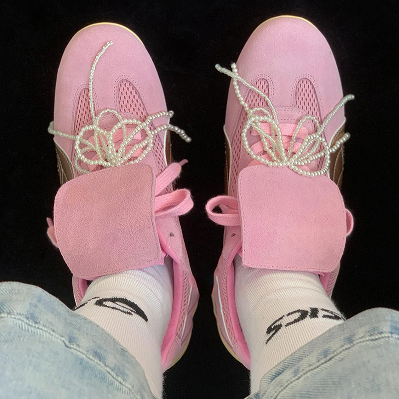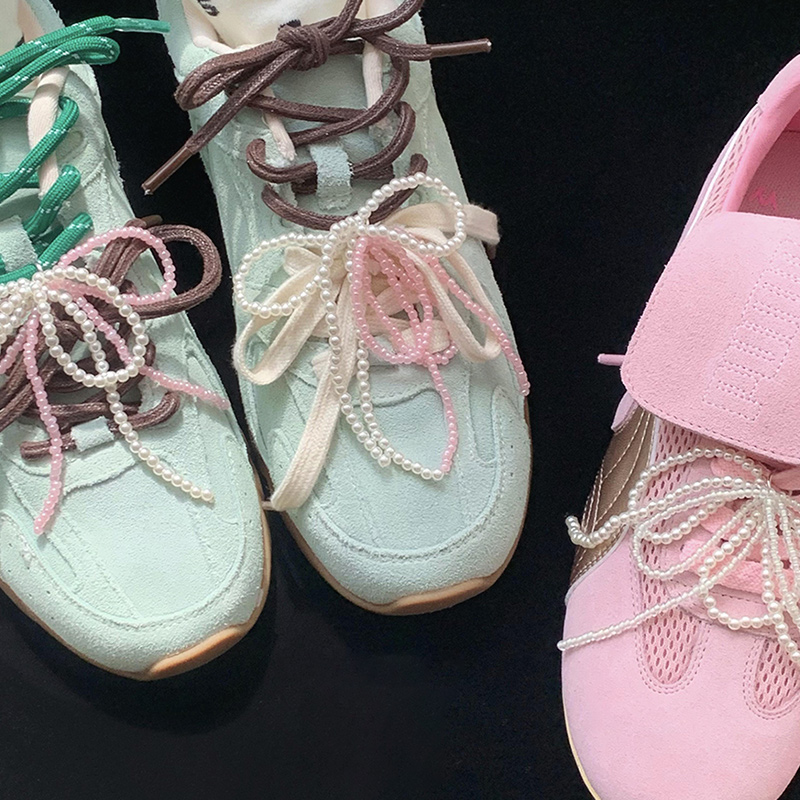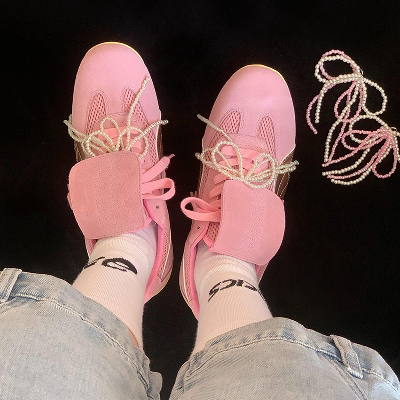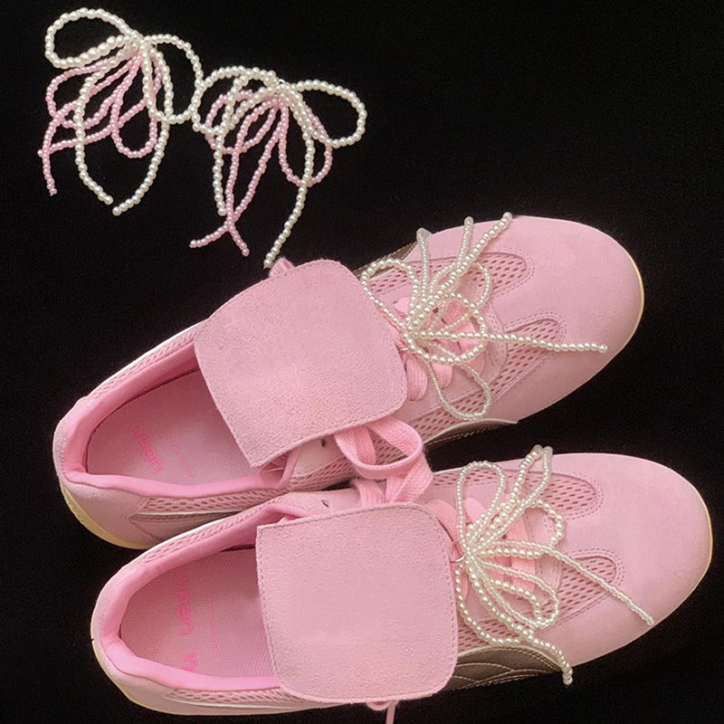 饰品ins芭蕾风丝带鞋 珍珠鞋 花装 蕾丝蝴蝶结粉色鞋 带 带配饰德训鞋