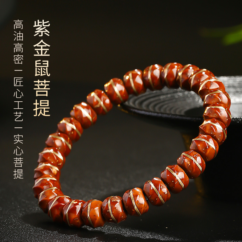 月印百川紫金鼠菩提手串男女款 一线药师老型珠实心菩提子佛珠手链