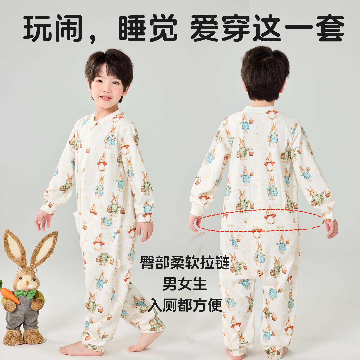 儿童秋冬纯棉睡袋男童连体睡衣家居服A类中大童睡衣男孩连身睡袋