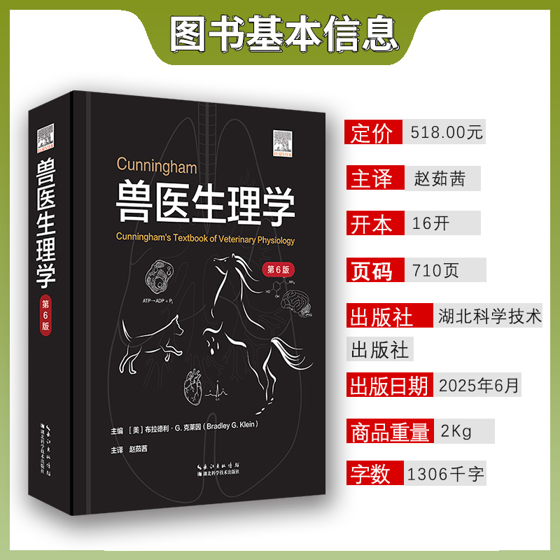 赵茹茜 社9787570637775 美 Bradley G.Klein G.克莱因 主编 布拉德利 湖北科学技术出版 兽医生理学 主译 第6版