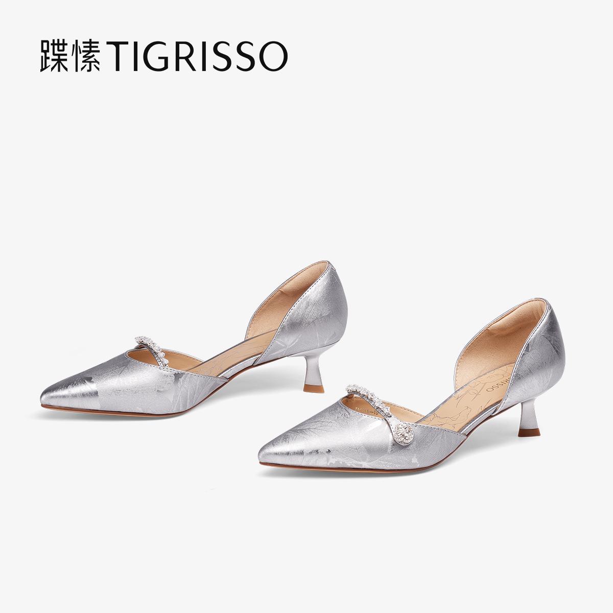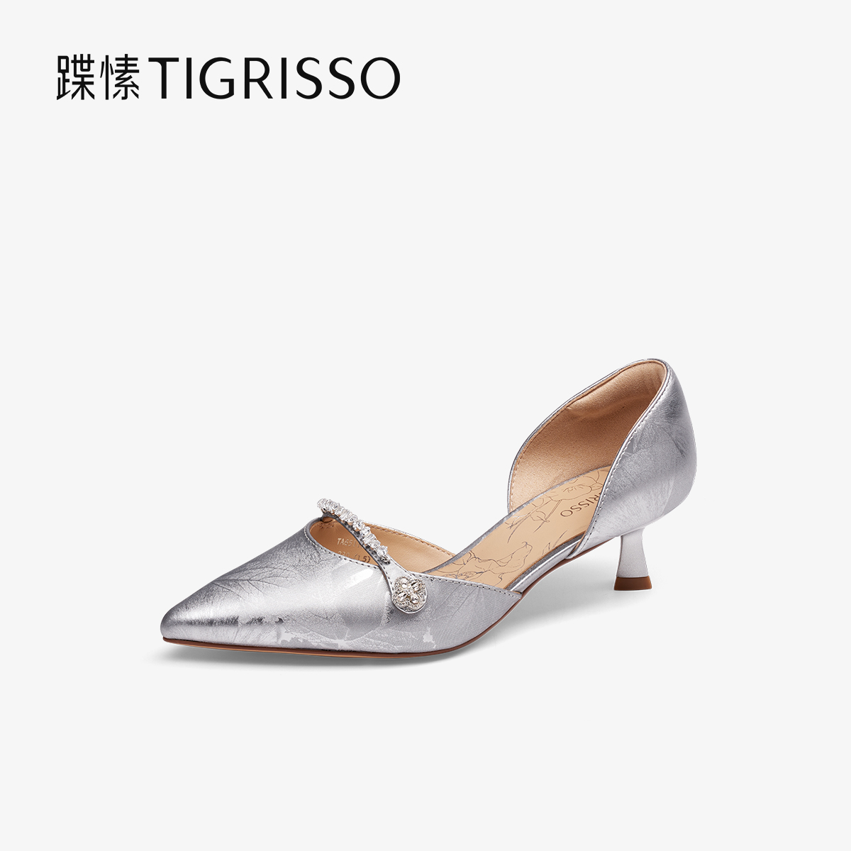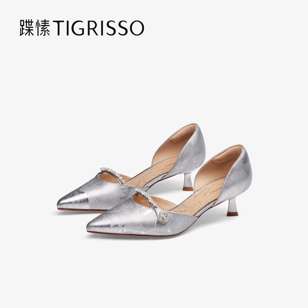TA65116 蹀愫2025年春季 小猫跟单鞋 银色尖头浅口细跟高跟鞋 新款