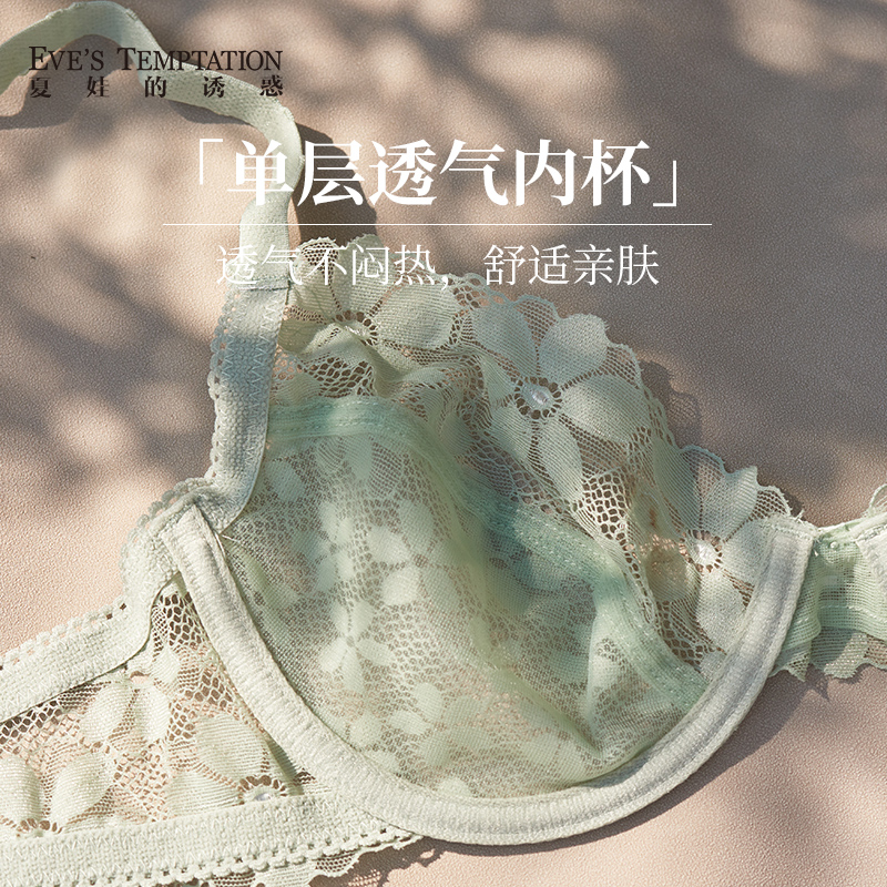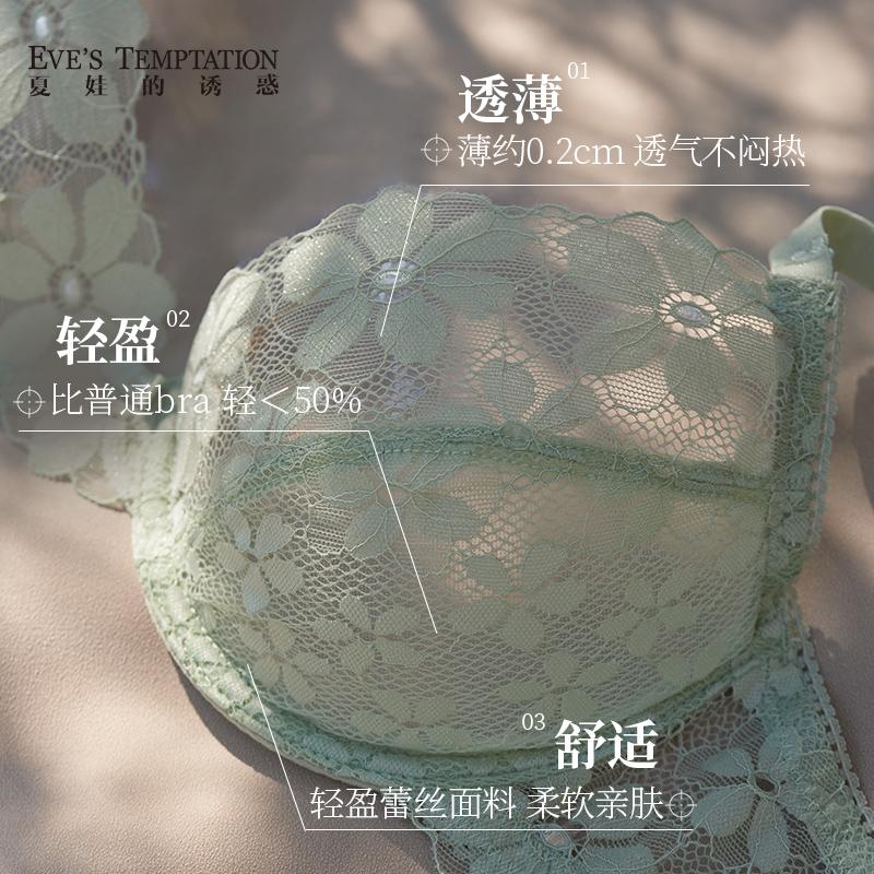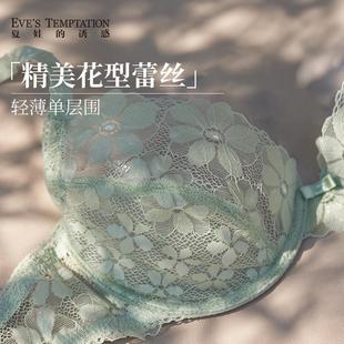 夏娃 蕾丝性感纯欲上托防下垂文胸罩 诱惑大胸显小内衣女士超薄款