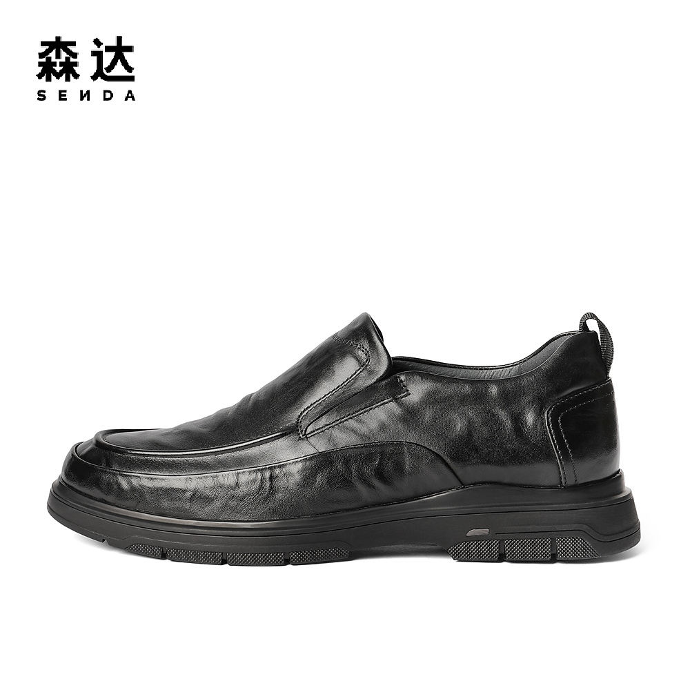 头层牛皮一脚蹬厚底商务休闲中老年爸爸男鞋 老人头皮鞋 男真皮秋季