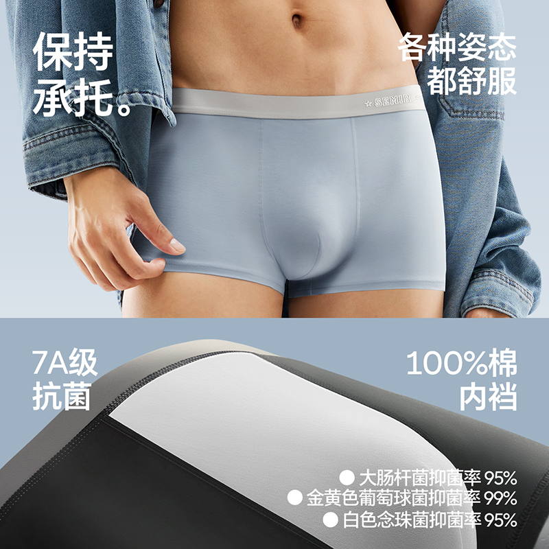 男生2025新款 抗菌平角短裤 大码 海澜之家男士 男款 四角裤 裤 纯棉内裤