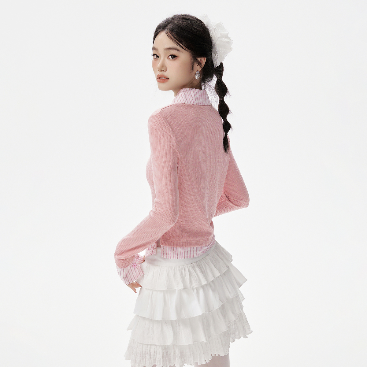 针织衫 条纹短袖 长袖 开衫 毛衣外套 RARN2025秋装 两件套圆领修身 新款