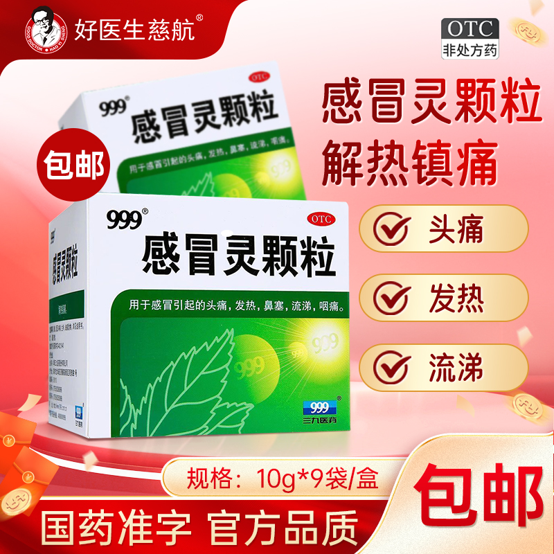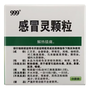999三九感冒灵颗粒冲剂鼻塞头痛药流鼻涕咽痛发热抗病毒药房正品