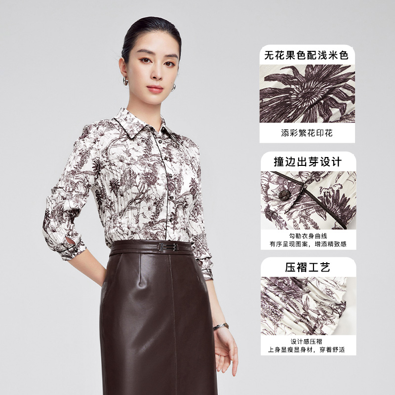 叠穿搭新款 衬衣内搭25秋冬季 女棕色上衣 长袖 阔色黄色翻领收腰衬衫