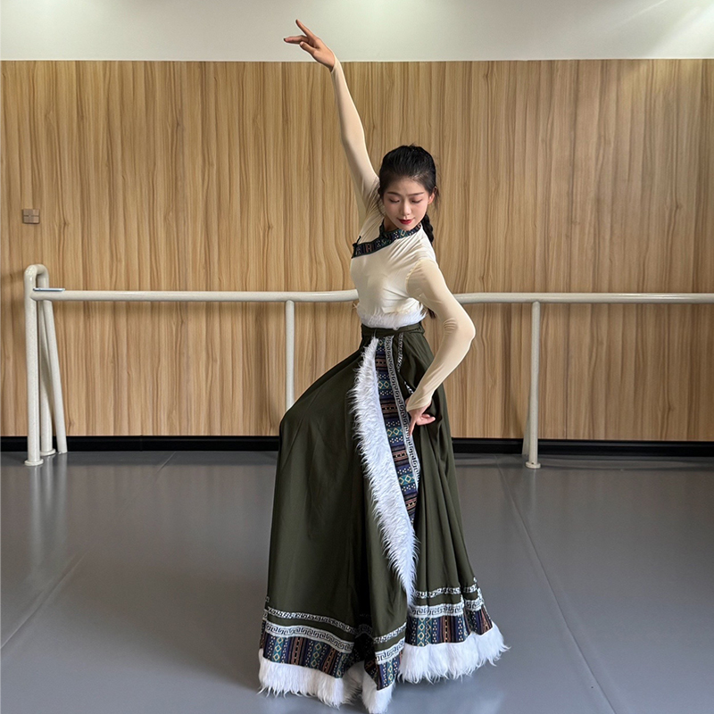 藏族舞蹈演出服装 女成人洗衣歌踩点舞艺考练习裙民族风舞台大摆裙