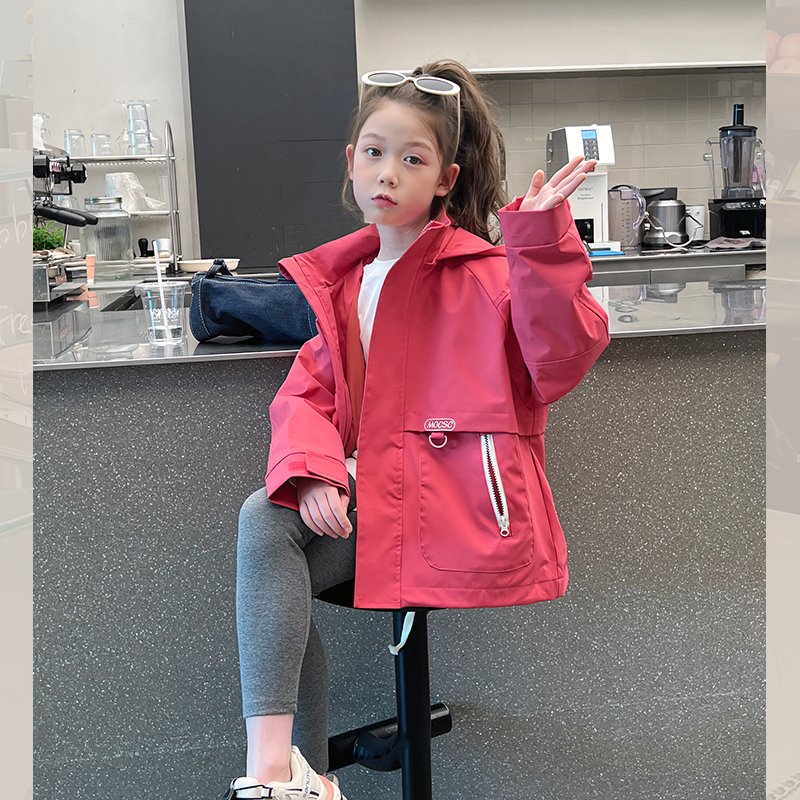 女孩上衣2025春秋新款 女童连帽风衣儿童洋气冲锋衣大童装 外套开衫