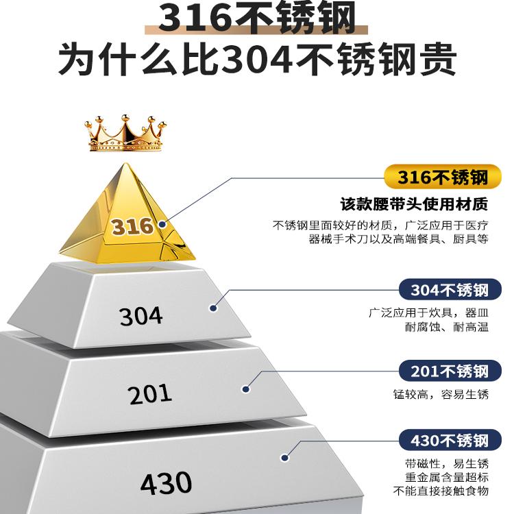 诗泊伦男士 高档316不锈钢自动扣皮带外穿腰带头卡子配件3.5CM