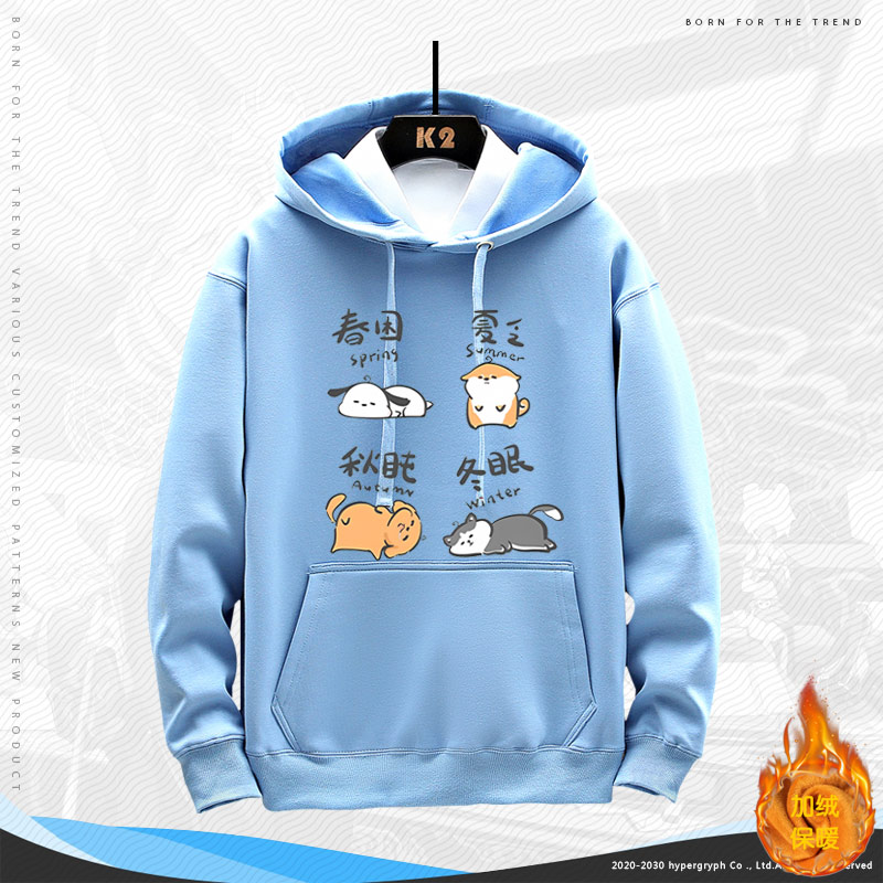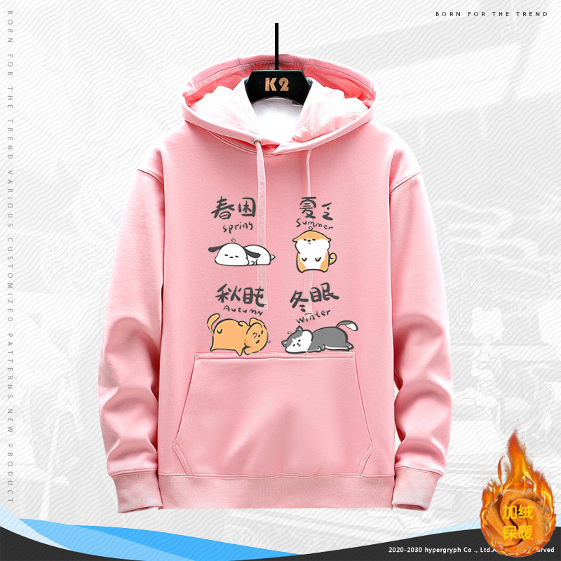 休闲宽松秋冬情侣装 日常长袖 小狗趣味可爱连帽卫衣男女同款 四季