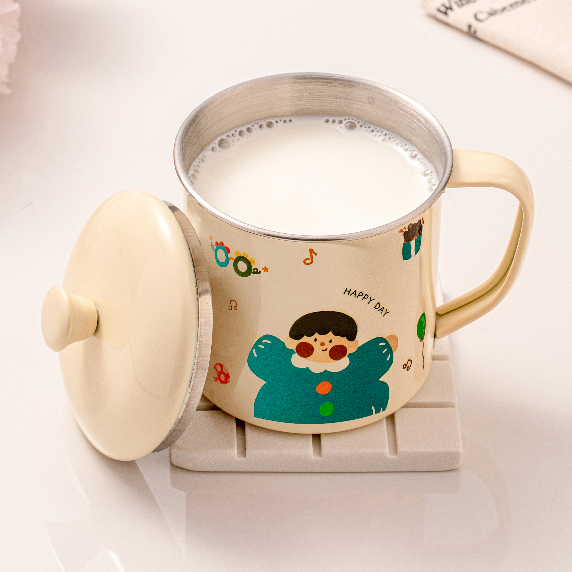 316不锈钢杯子食品级儿童水杯牛奶杯宝宝学饮杯早餐杯带盖酸奶杯