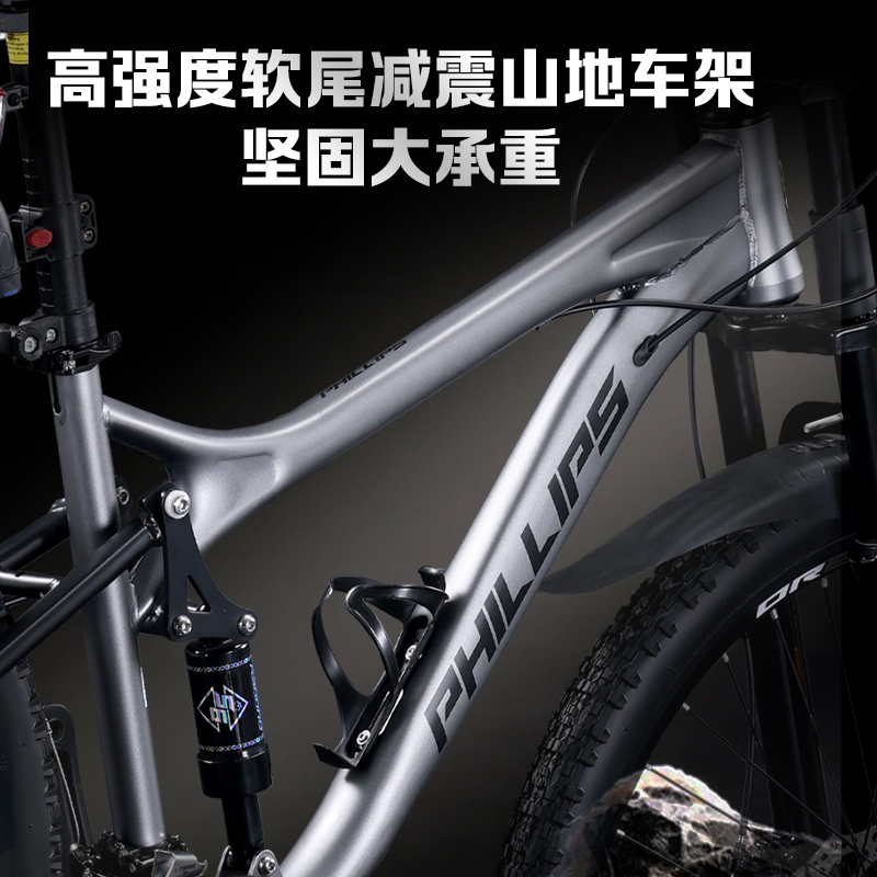 菲利普软尾山地自行车男女成人双减震变速单车青少年学生