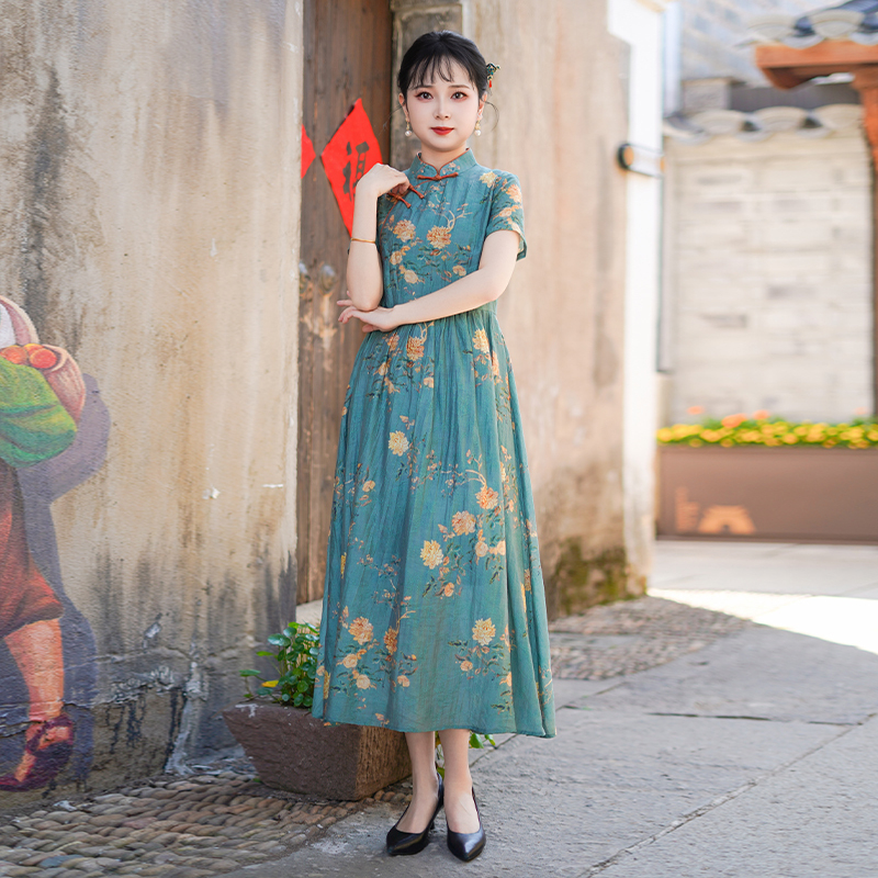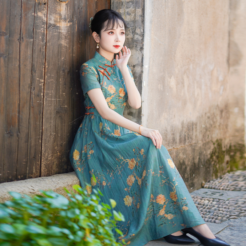 改良奥黛旗袍2025年新款 中国风复古日常可穿气质高端禅意茶服优雅
