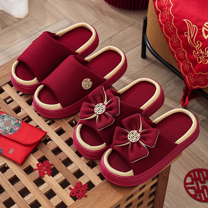 情侣款 新娘陪嫁婚礼红色高档居家喜庆轻奢一对新婚鞋 夏季 结婚拖鞋