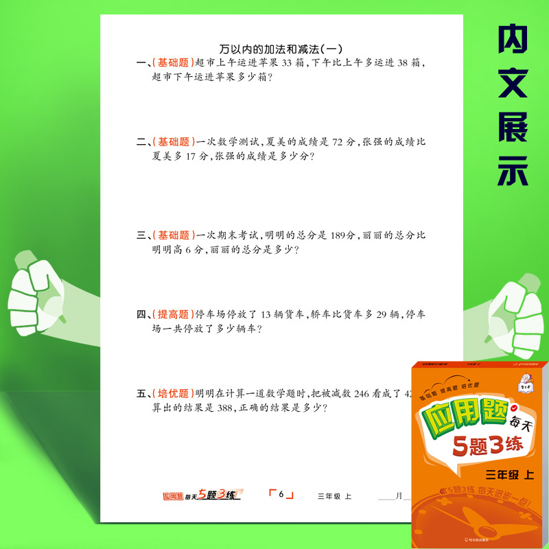 小学生应用题每天5题3练一年级二年级三年级上册下册同步数学教辅思维训练口算每日一练习题数学口算启蒙习题册作业本应用题刷题本