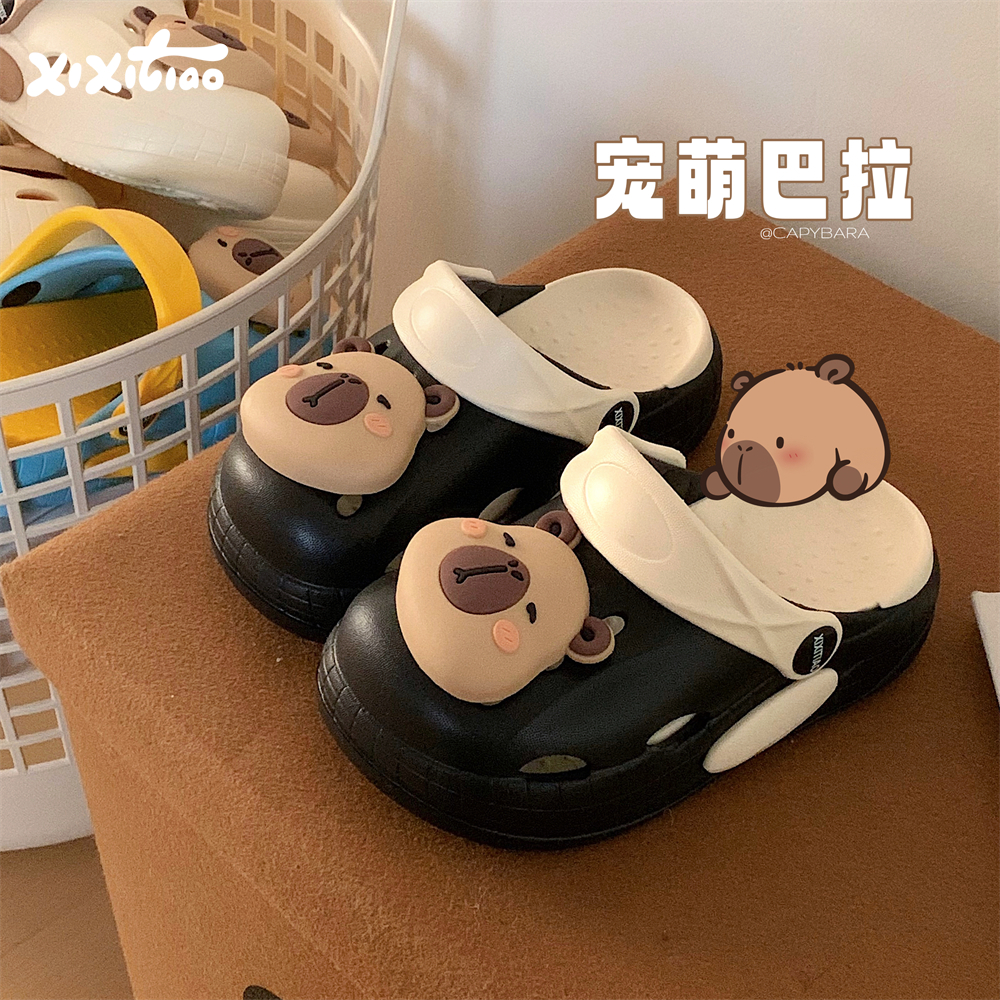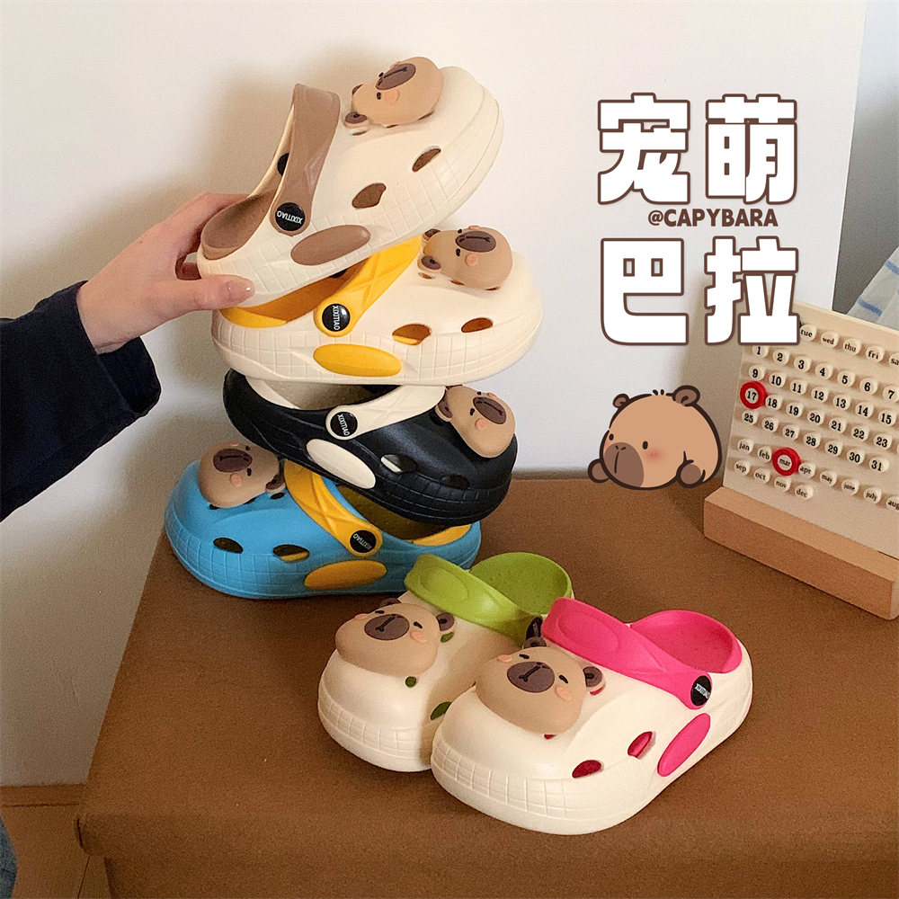 卡皮巴拉水豚洞洞鞋 男童女童包头个性 夏季 舒适凉拖鞋 拼色儿童时尚